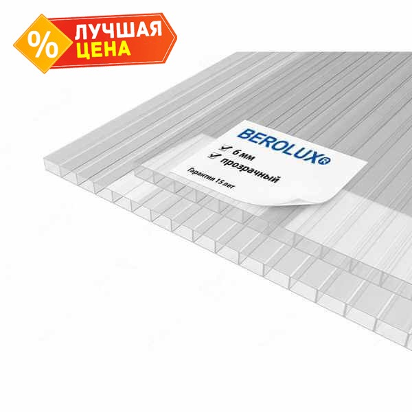Сотовый поликарбонат 6 мм BEROLUX прозрачный 2100х12000 мм